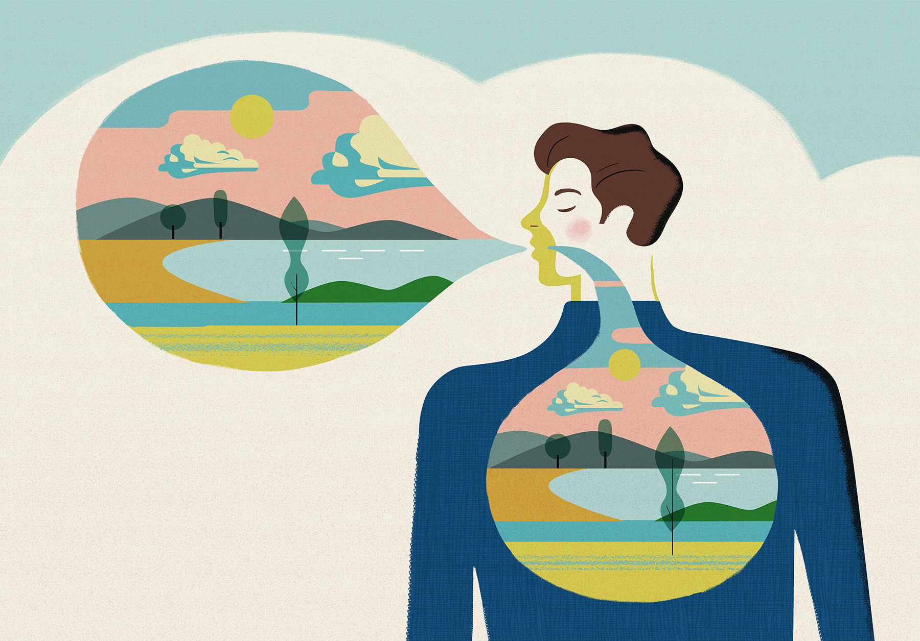 Entspannend, heilsam, antidepressiv: Medizin und Psychologie entdecken die Atemtherapie neu. Illustration zur Titelgeschichte "Atmen".